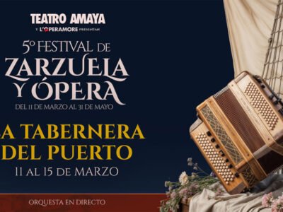 – Se conmemoran 90 años de “La Tabernera del Puerto” desde que fue estrenada el 6 de mayo de 1936 en el Teatro Tivoli de Barcelona . La obra podrá verse del 11 al 15 de marzo de 2026 en el Teatro Amaya de Madrid, con orquesta y voces en directo