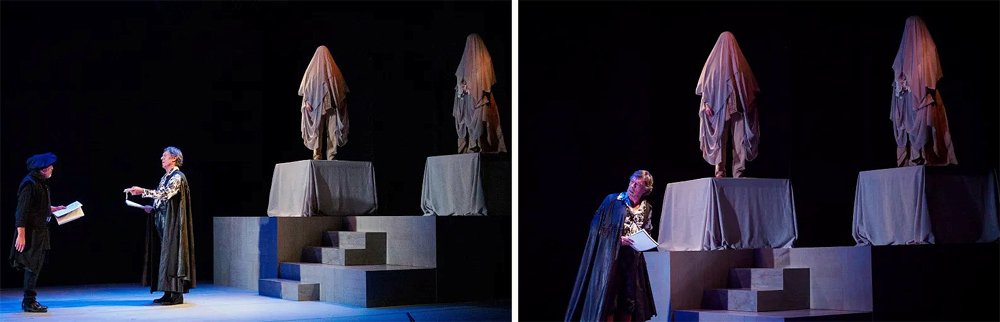 Durante muchos años “Don Juan Tenorio” de José Zorrilla era título obligado durante el día de Todos los Santos y de Todos los Difuntos. Han sido muchas las versiones, y una fórmula intermedia es la lectura simple, en la que se confía en el valor interpretativo de los actores, o bien la lectura dramatizada en la que se recurre al vestuario, a un “atrezzo” y a módulos escenográficos sugerentes, vestidos de minimalismo. Este es el caso elegido a través de la versión y dirección de Jesús Cracio.