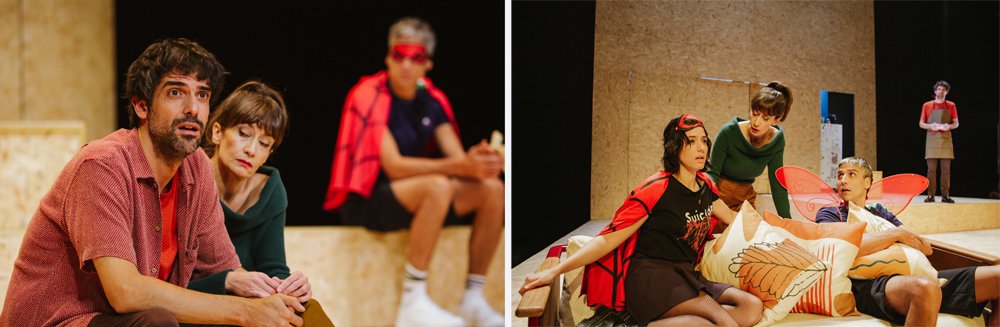 Un tema central es el tema de la crisis de la mediana edad que no es más que una crisis existencial, profunda de los personajes, pero también esta relacionado con la crisis de la narración, cómo seguimos contando historias y cómo nos contamos nuestra propia historia y añadimos a la ficción. ¿Somos autores o personajes de nuestras vidas? Todo esto está mezclado. La idea es que los personajes están en un momento de crisis existencial, que, de alguna forma, tiene que ver cómo se narra la historia y de cómo han llegado a ese momento. Hay un personaje, Toni, que está intentando escribir una novela, y necesita volver a ser autor y escribir esa novela, para comprender dónde está, existencialmente. Hay, pues, una relación entre el hecho de construir una narración con el hecho de ser autor de tu propia vida y, por lo tanto, tu propia vida esté en control. La idea de Toni es hasta qué punto, el espectador es capaz de imaginar otra idea posible para él, aunque no escriba nada. Es un acto de reescribir su vida. Entonces no me interesa tanto la figura de un escritor, sino la idea de alguien que siempre está revaluado y reescribiendo su vida. Para expresarlo recurro a la imagen de alguien que está escribiendo directamente algo. Yo vengo del cine, donde he trabajado mucho, y tengo una actitud ante el teatro, haciendo un tipo de obra que, a lo mejor, no es a lo que estamos acostumbrados. También me he dado cuenta de que el teatro es muy omnívoro, todo lo admite. En mis obras hay partes que están más cerca de una novela, por el tipo de escritura; hay otras partes que tienes, más, la sensación de estar en una película respecto a cómo van avanzando las escenas Me interesa ese espacio fronterizo entre la novela, el teatro y el cine, y el teatro lo admite todo pues tiene esa capacidad en cuanto que sucede en la imaginación del espectador, y en esa invitación a imaginar y con ese juego todo cabe.