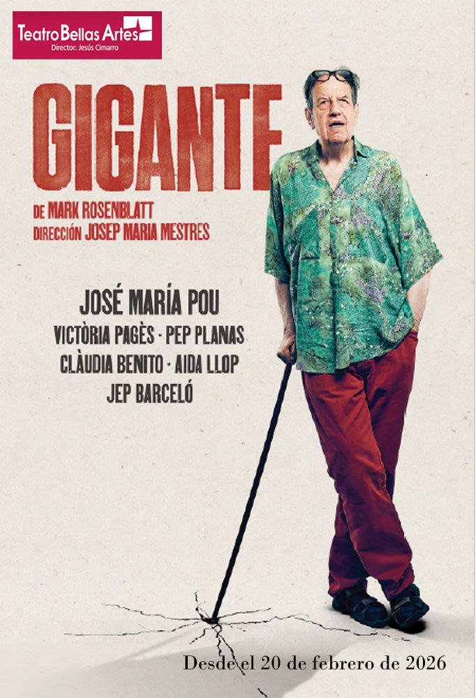 – Llega al Teatro Bellas Artes de Madrid la versión en castellano de “Gigante” de Mark Rosenblatt,dirigida por Josep Maria Mestres e interpretada por José Maria Pou, quien encarna al excéntrico escritor británico Roald Dahl, autor de “Matilda” y “Charlie y la fábrica de chocolate”, e infinidad de cuentos para niños y para adultos.