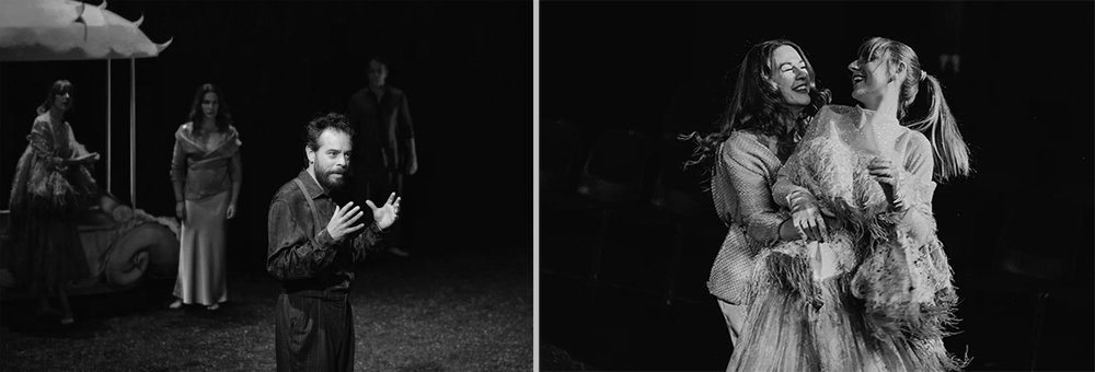 Estas tres mujeres y una cuarta, escondida, y cuatro hombres van a contar esta historia y confluyen en el conjunto escritural escogido y también en el espacio escénico, todas y todos pertenecientes a diferentes generaciones. Aquellas y estos son interpretados por Leonardo Ortizgris, que encarna a Octavio Paz, Lucía Quintana, que hace de Bona Tibertelli y María-José Tremini, Isabel Pamo, que se mete en la piel de Elena Garro y Germán Torres, encarnando a los escritores Adolfo Bioy Casares y a André-Pieyre de Mandiargues y por último al pintor y escultor mexicano, Francisco Toledo. En este círculo artístico e interpretativo sale a relucir la hispanidad y, de hecho, queríamos que el equipo tuviera esa hispanidad con la mezcla de lenguajes y buscamos mezclar acentos, francés, italianos, argentino como una especie de perfume. Aunque no queremos incidir, nos gusta ver cómo el español se constela a través de todos nuestros espacios geográficos. Yo nací en Colombia, igual que el músico que es Julián Mayorga. El equipo es multidisciplinar.