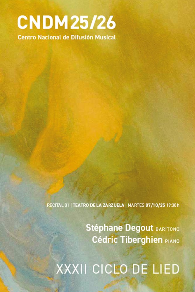 El XXXII Ciclo de Lied del Centro Nacional de Difusión Musical (CNDM) y el Teatro de la Zarzuela se inaugura con la actuación, por primera vez en esta programación, del barítono Stéphane Degout, una de las voces más aclamadas del panorama actual, junto al pianista Cédric Tiberghien, intérprete refinado y cómplice habitual de los cantantes más prestigiosos de su generación. Los artistas presentarán un programa de gran riqueza que enlaza dos tradiciones esenciales del repertorio de cámara vocal: el lied alemán y la mélodie francesa. Con su habitual sensibilidad para fundir palabra y música, ofrecerán un viaje que transita del romanticismo germánico a la poesía musical francesa de finales del XIX y comienzos del XX.