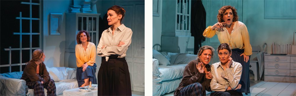 Cada una de ellas representa una parte de la constelación familiar. Una tiene que ver más con la parte racional, otra con la parte humanística y otra con la parte emocional. Ello genera conflicto, lo cual refleja la complejidad de las familias. Frecuentemente navegamos tiempos y espacios, y saltamos del amor al odio en cuestión de segundos y somos capaces, también, de abrir las heridas más profundas. Si hay algo que nos puede empujar al dolor, son este tipo de vínculos familiares tan precisos y fuertemente cocidos durante tanto tiempo. Hay algo ahí, que, inevitablemente, dispara enseguida las emociones, y nos hace transitar desde lo más precioso a los lugares más dolorosos. No son necesarios grandes odios sino grandes malentendidos para separarnos. Ese conflicto es llevado desde la psicología de cada una de ellas: una con humor y vitalidad; la otra con todo el raciocinio y su amor por la ciencia; y la tercera, por su profesión, tiende más a las artes, generando un ecosistema que refleja muy bien lo que pueden ser estos vínculos familiares de cualquier familia en el mundo. Las tres hermanas experimentan el reparto del recuerdo y de los afectos. También se habla de la culpa y de cómo deshacernos de ella, de cómo llegar a perdonar y a renacer en un cuerpo más viejo. Ese lugar al que nos podemos permitir llegar una vez que el suelo bajo nuestros pies dejar de existir, que es lo que nos pasa cuando nuestros padres, madres ya no están, de repente.