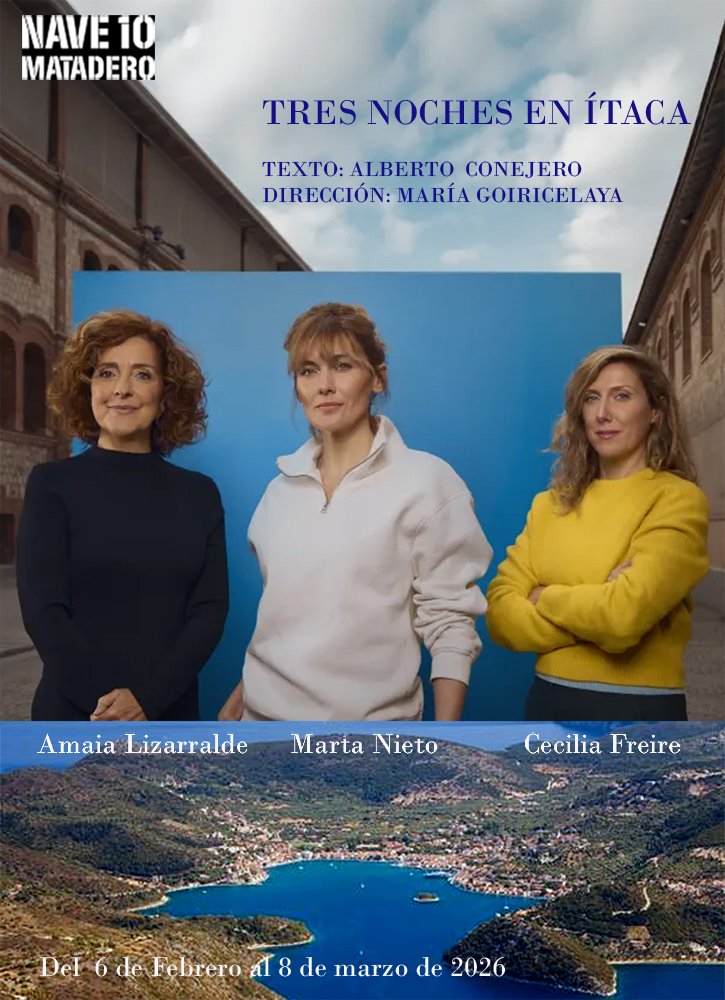 – “Tres noches en Ítaca” de Alberto Conejero es un entierro en Grecia, en una isla en donde la gente aún canta, pero también es un nacimiento, el de una etapa de madurez en la vida de Penélope, Helena y Ariadna, interpretadas por Amaia Lizarralde, Cecilia Freire y, Marta Nieto