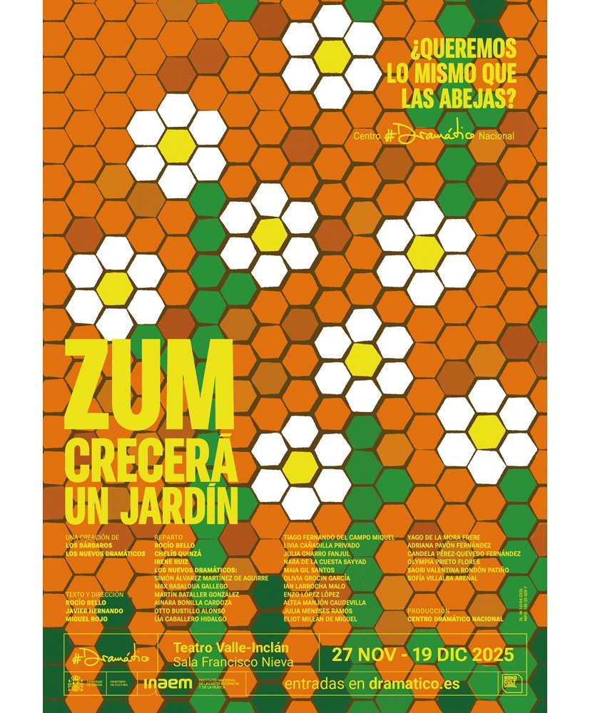 – La dirección y el texto de “ZUM. Crecerá un jardín”, corren a cargo de Los Bárbaros, grupo formado por Rocío Bello, Javier Hernando y Miguel Rojo, que aborda conceptos clave de la sociedad desde la escena, las artes plásticas o la literatura.